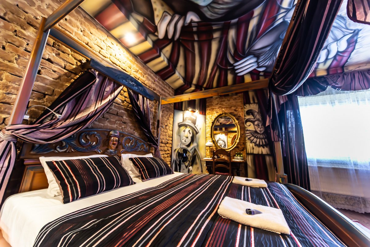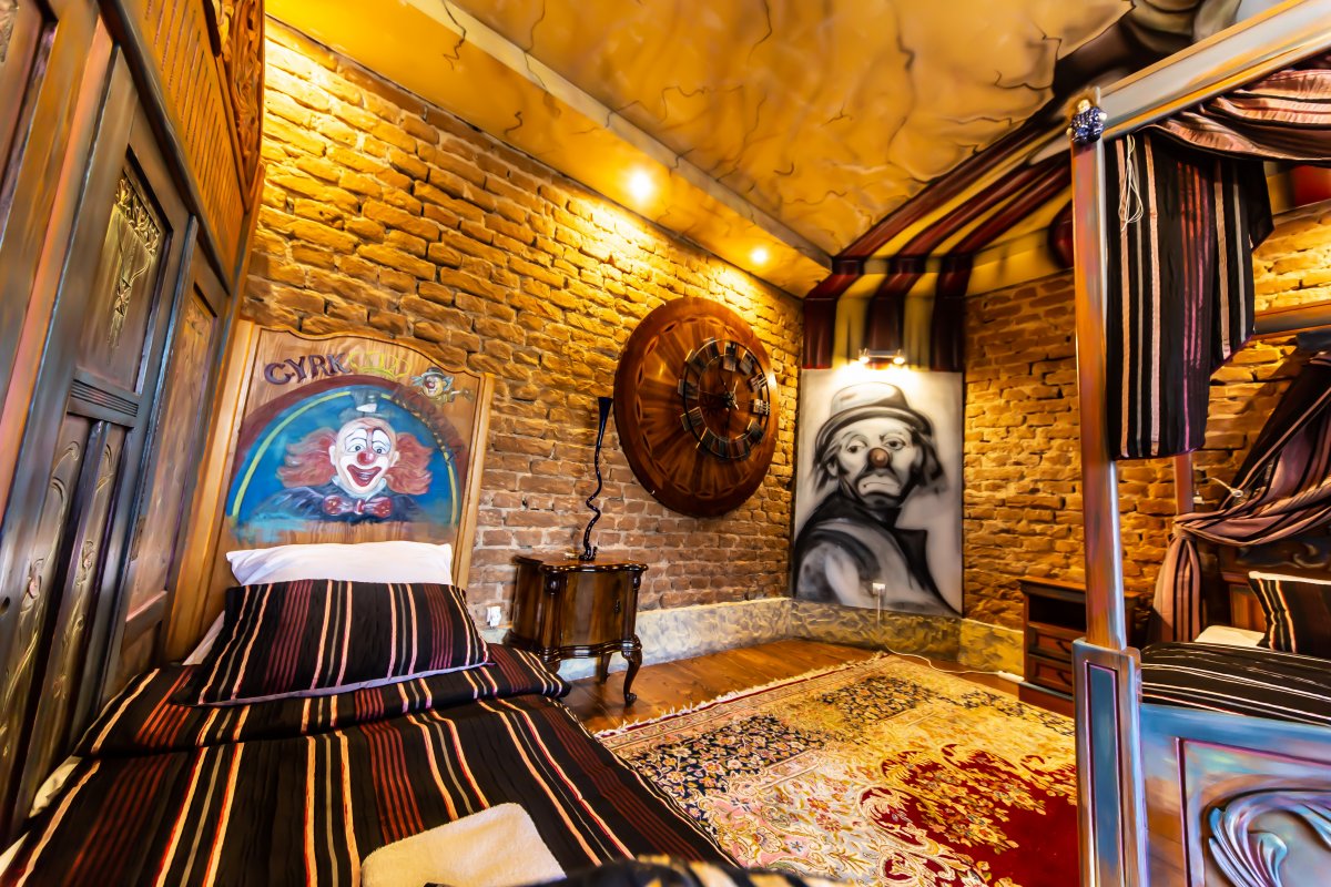 Sen pod czujnym okiem Klauna. Tylko w Garderobie Klauna, spoglądającego na gości z sufitu. Malowidła klaunów oraz klaunik siedzący na poręczy łóżka pobudzą wyobraźnię gości, którzy są wielbicielami horrorów.